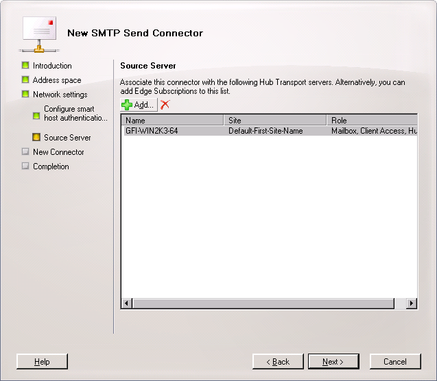 6- Bu aşamada bizden kaynak sunucumuzu soruyor SMTP connector’u kaynak sunucu üzerinde oluşturmuş olduğumuz için otomatik olarak geliyor bu nedenle ben Next diyerek devam ediyoruz.